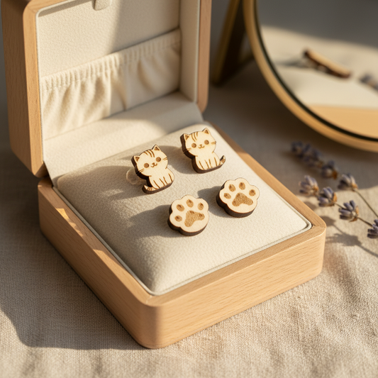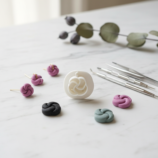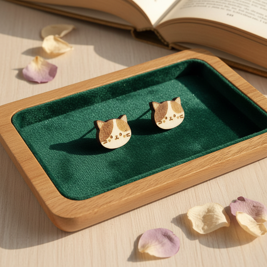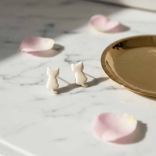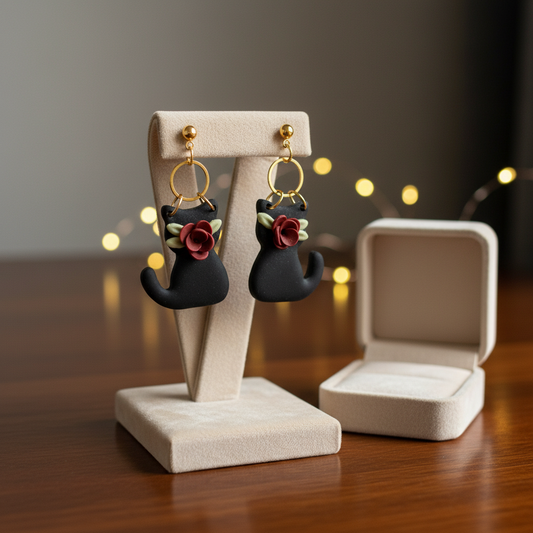 Polymer Clay Ohrstecker kleine Katzen mit Leder Effekt
