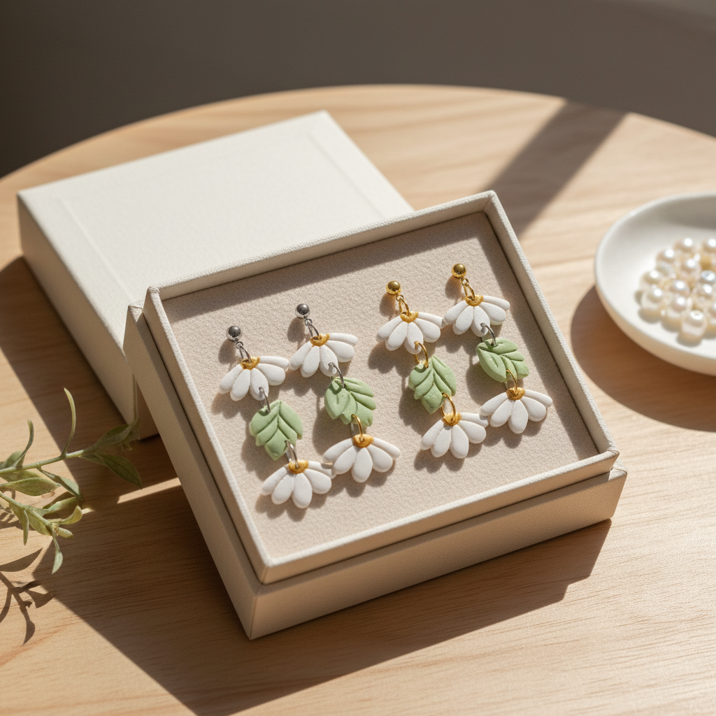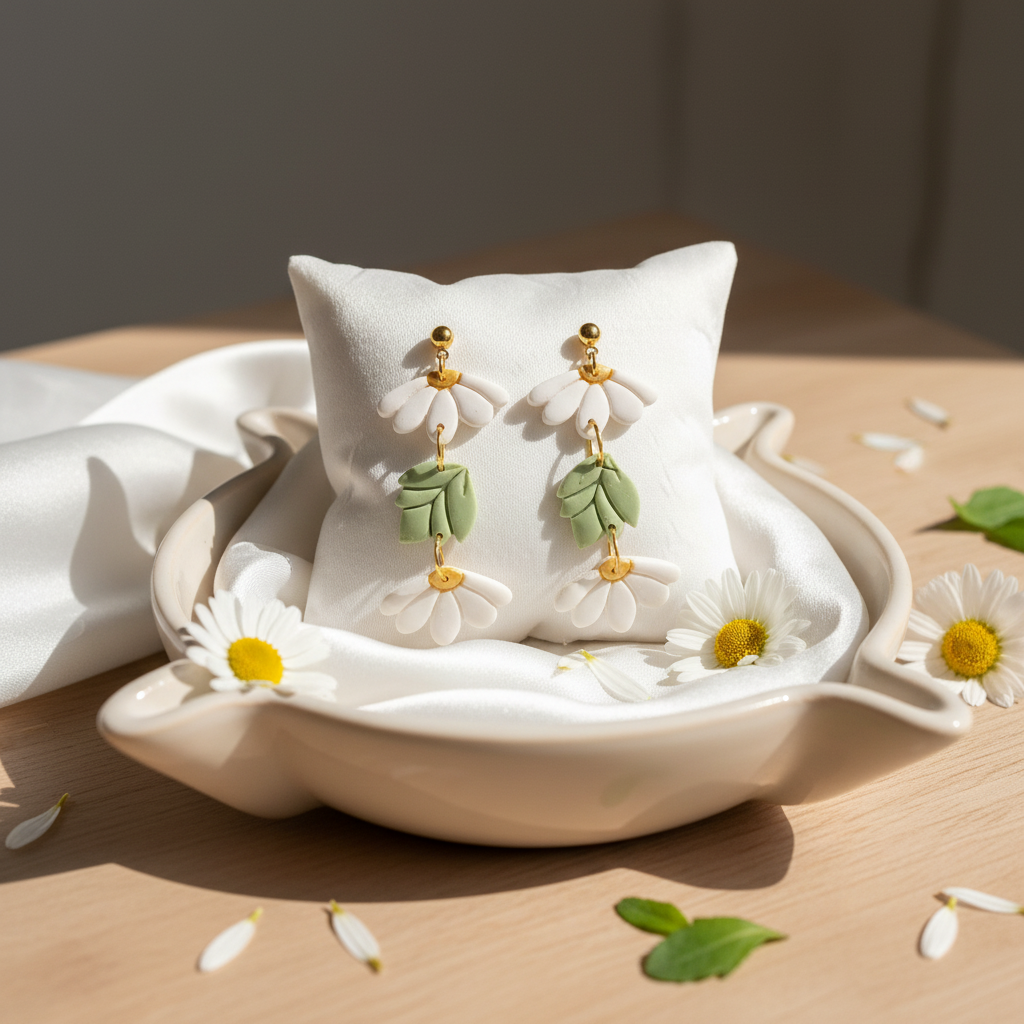 Darf ich euch diese zauberhaften Gänseblümchen Polymer Clay Ohrringe vorstellen? Wunderschöne Polymer Clay Ohrringe in gold oder silber.