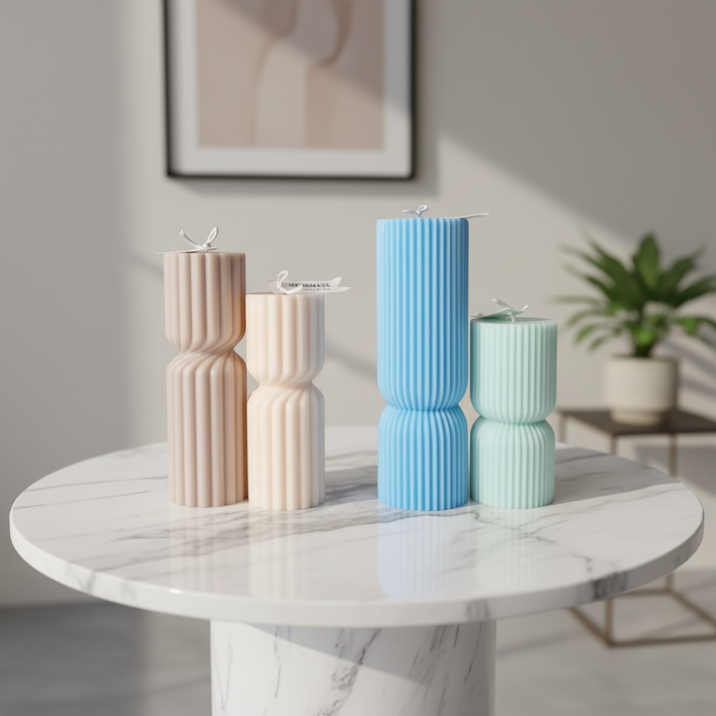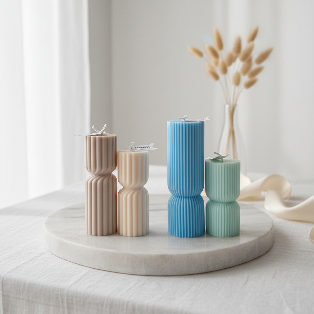 Mit liebe handgegossenen, Sojawachskerzen als dekoratives Element in deinem Zuhause oder als ganz besonderes Geschenk für einen lieben Menschen. Durch ihre besondere Textur bestechen sie durch Schlichtheit und Eleganz.