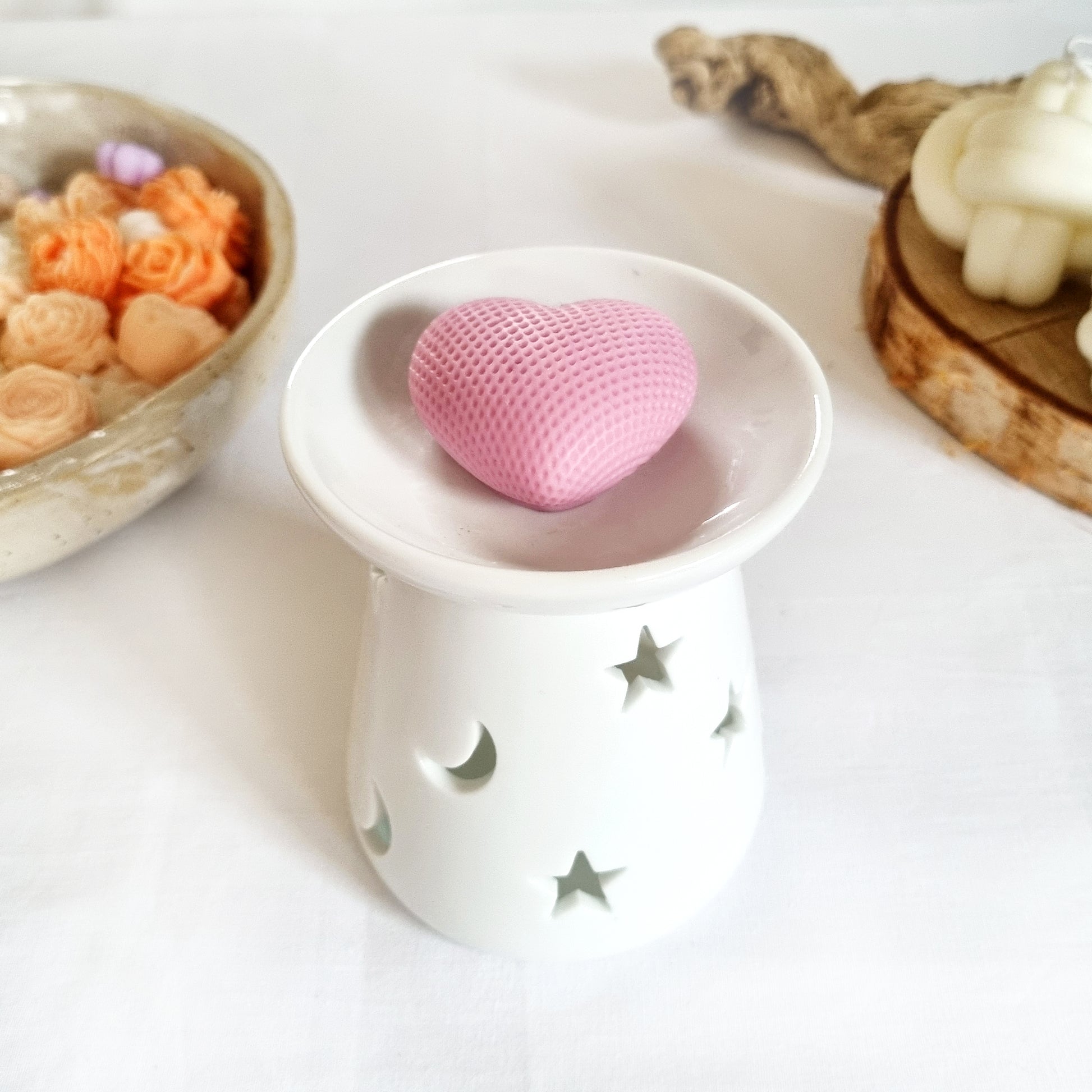 Die Duftmelts sind aus Sojawachs mit eine Duftanteil von 10%. Natürlich können wir dir das Duftherz auch in jeder anderen Farbe anbieten. Habt ihr besondere Farbwünsche oder möchtet ihr eine größere Stückzahl, so gebt uns gern Bescheid.
