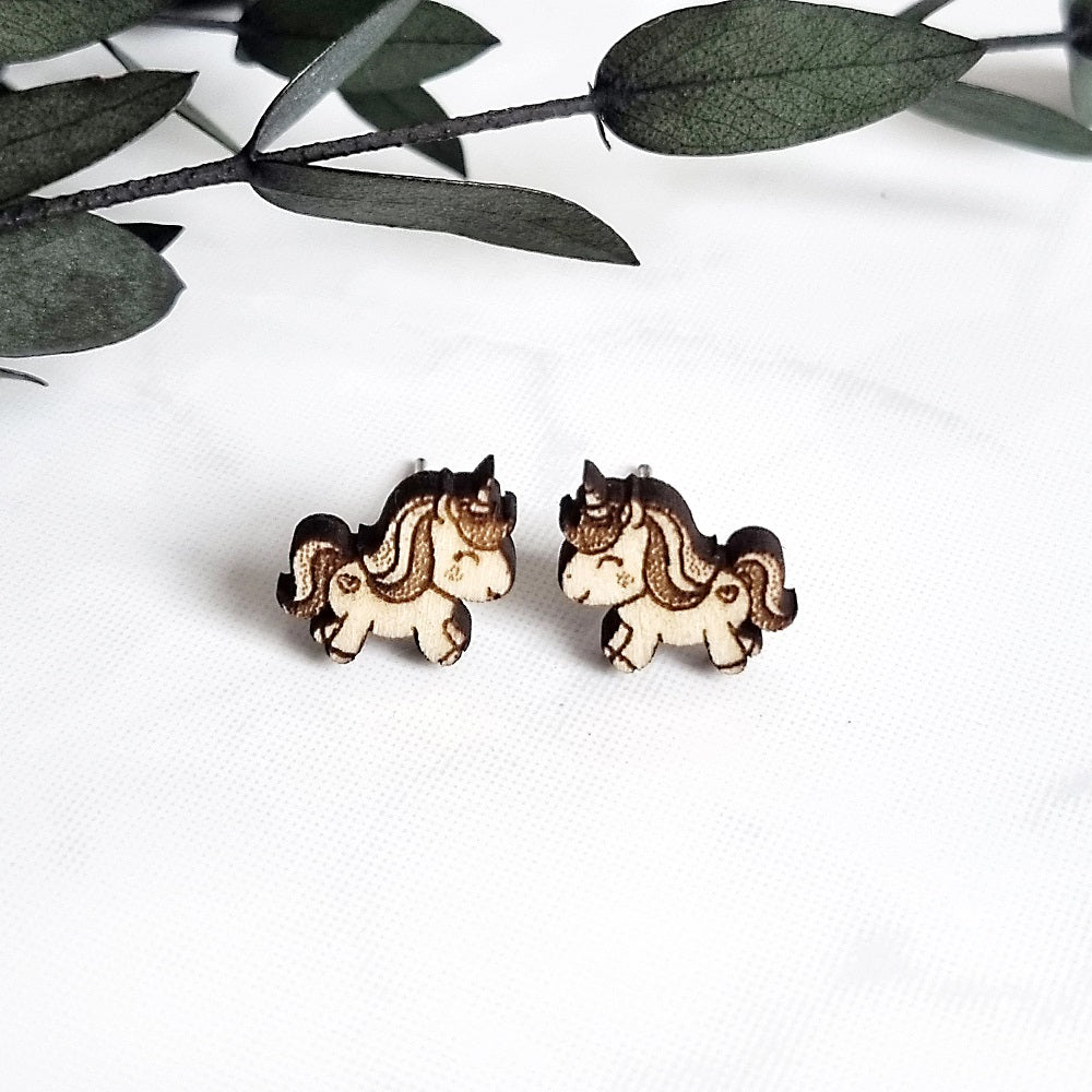 Einhorn Holz Ohrringe