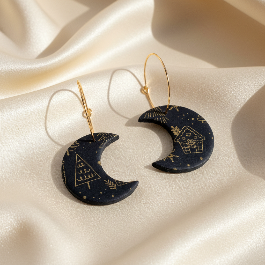 Diese wunderschönen handgefertigten Mond Polymer Clay Ohrringe sind 30cm groß und baumeln an einer 25cm Creole. Perfekte leicht Ohrringe zum Tragen oder zum verschenken an einen lieben Menschen.