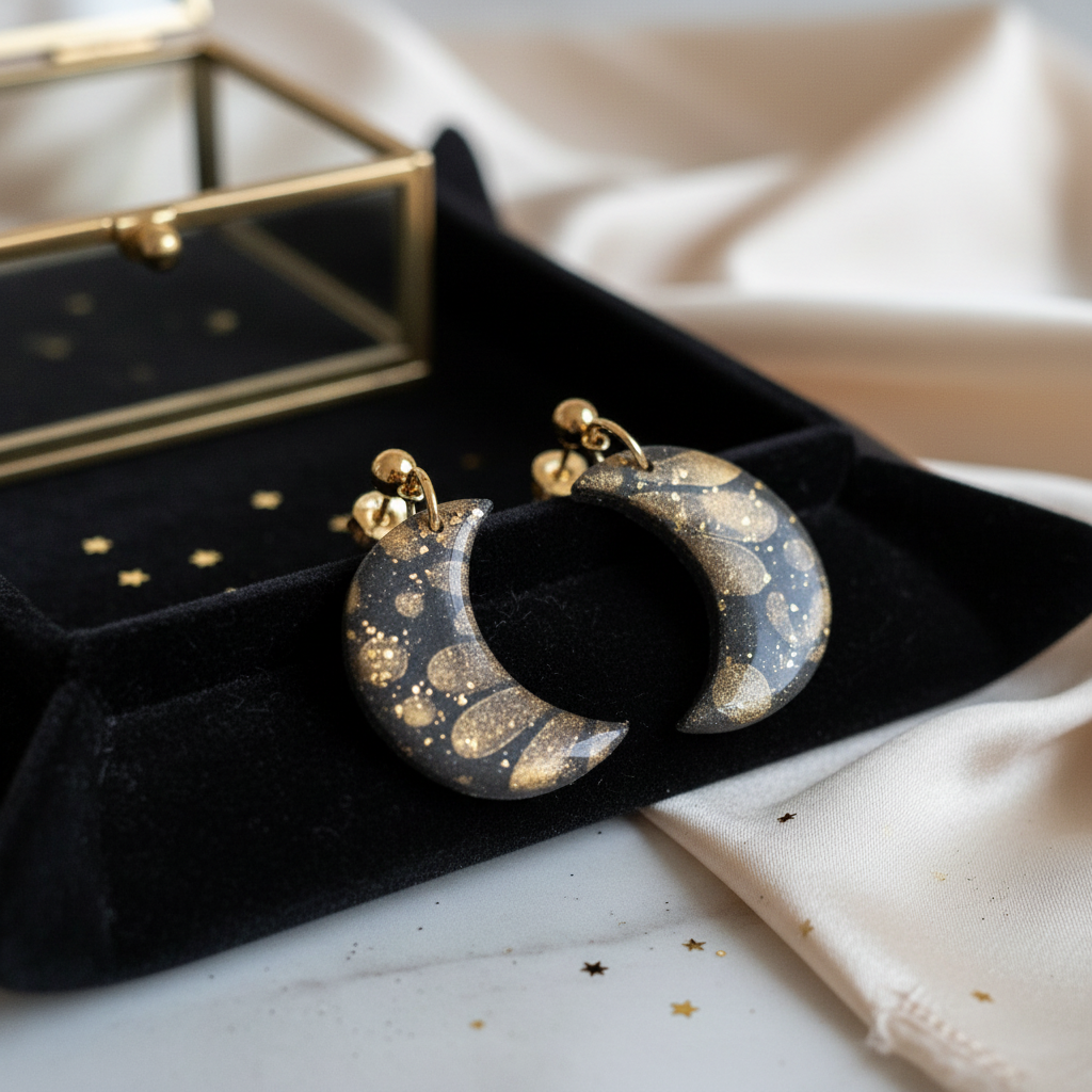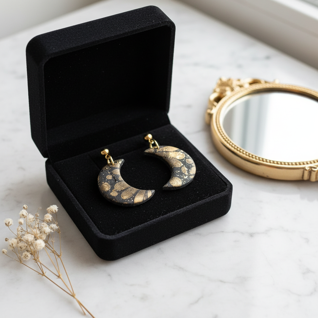 Mond Polymer Clay Ohrringe