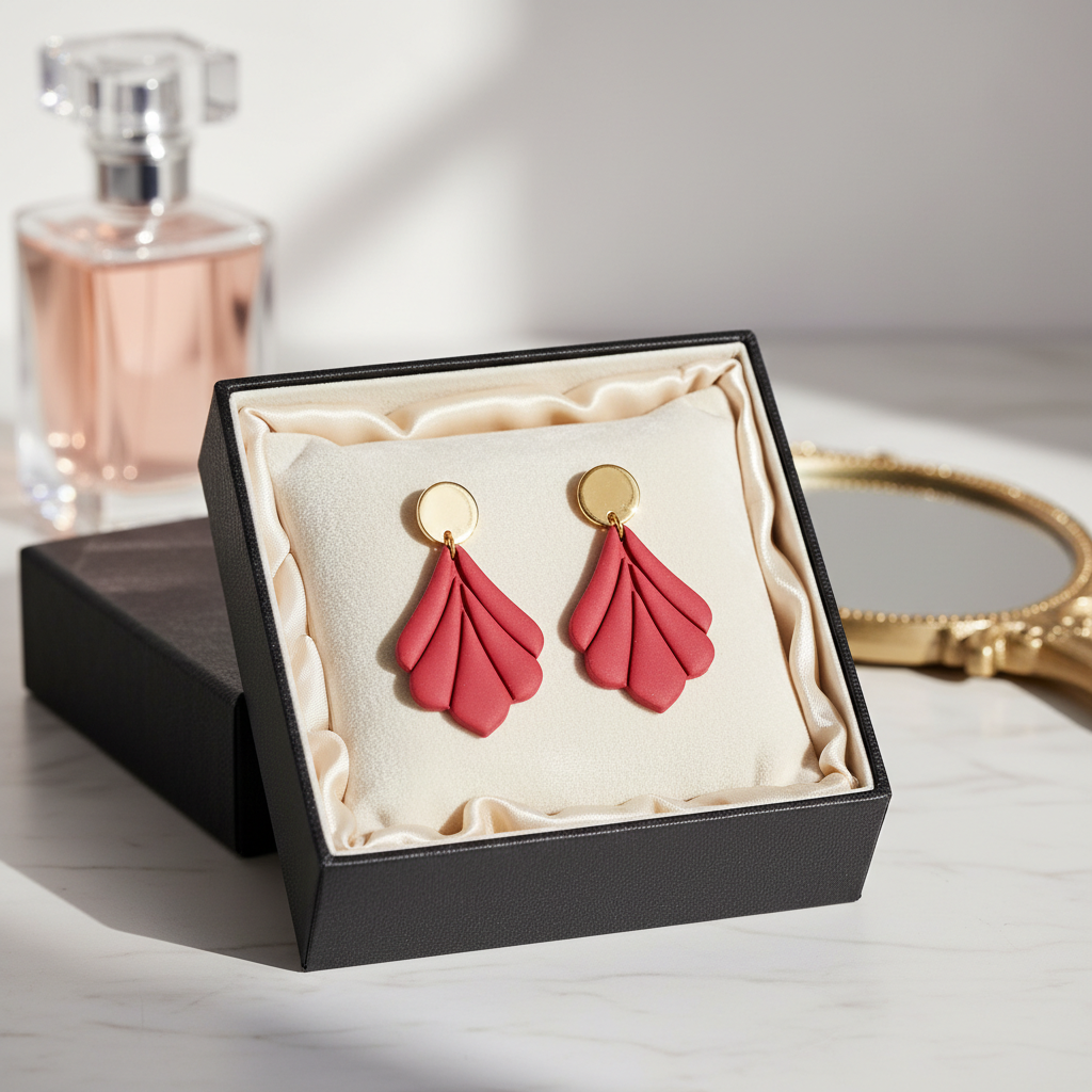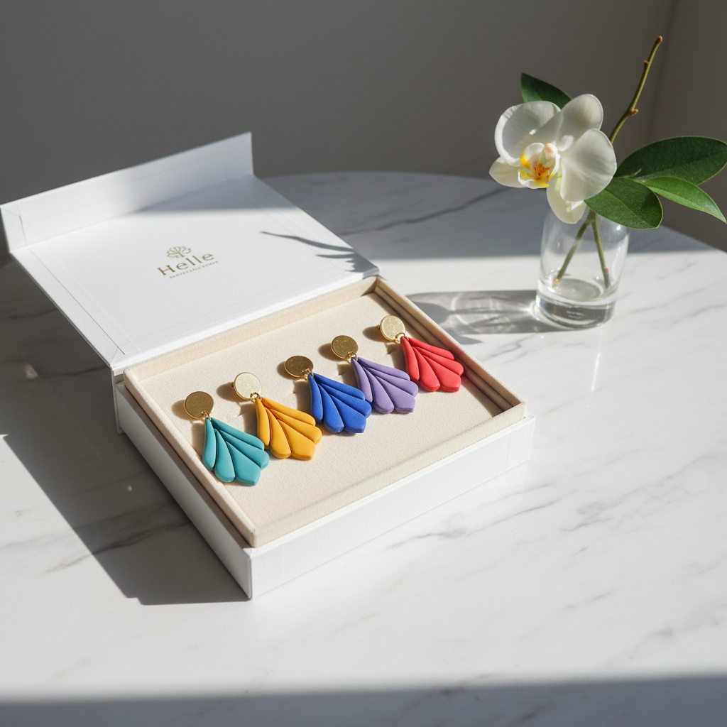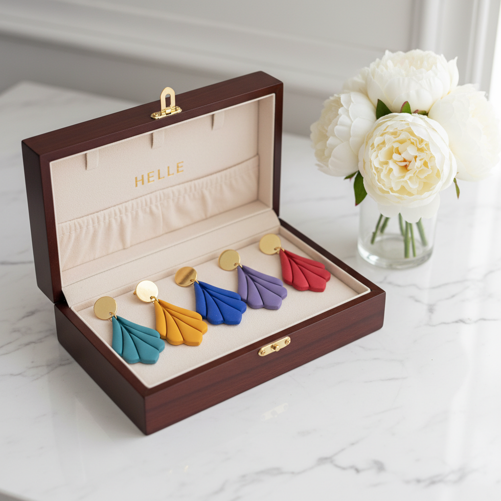 Für jeden unserer Ohrringe benutzen wir ausgewählte Materialen. Deine gewünschte Form wird ausgestanzt, bearbeiten und im Ofen gebrannt. Danach wird geschliffen und poliert und die fertigen Teile werden zusammengesetzt. Wir fertigen jedes Produkt mit viel Liebe zum Detail in Handarbeit.
