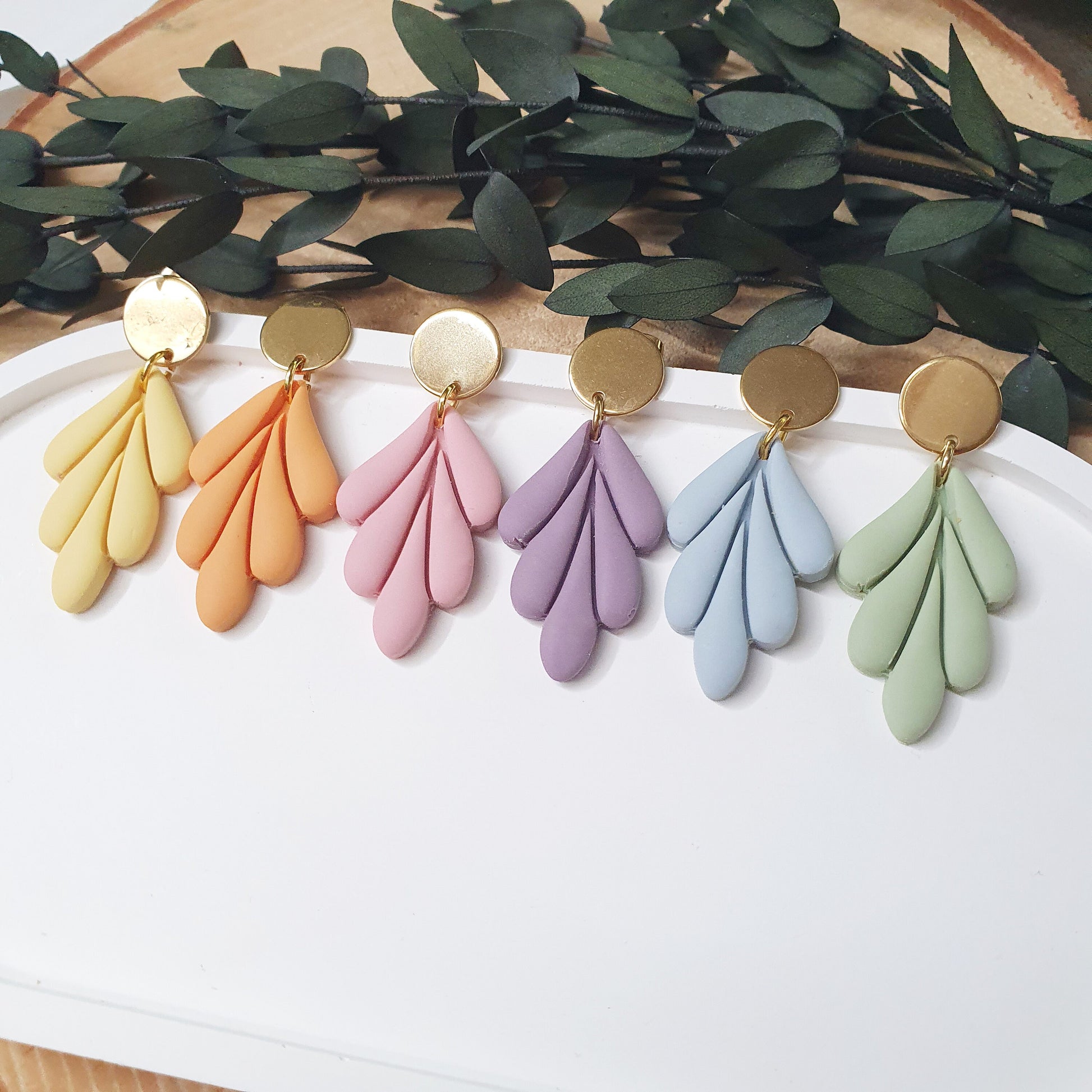 Darf ich euch unsere neue "Alice" Collection vorstellen? Diese zauberhaften Polymer Clay Ohrringe gibt es in sechs verschiedenen Farben. Bitte sucht euch euren Lieblingston anhand der Farbvorgabe auf dem Foto aus.