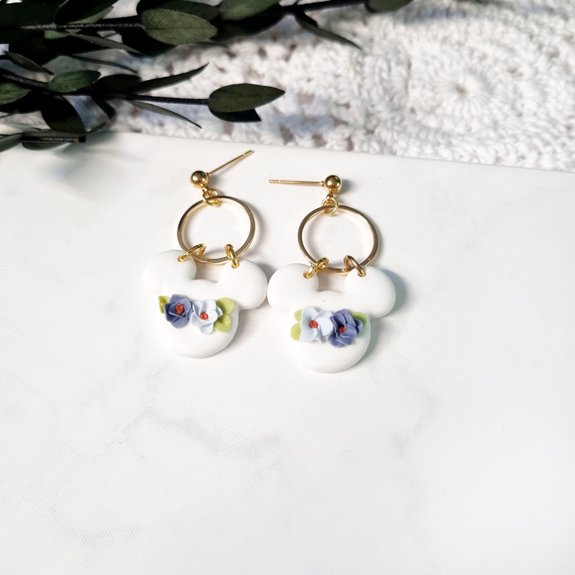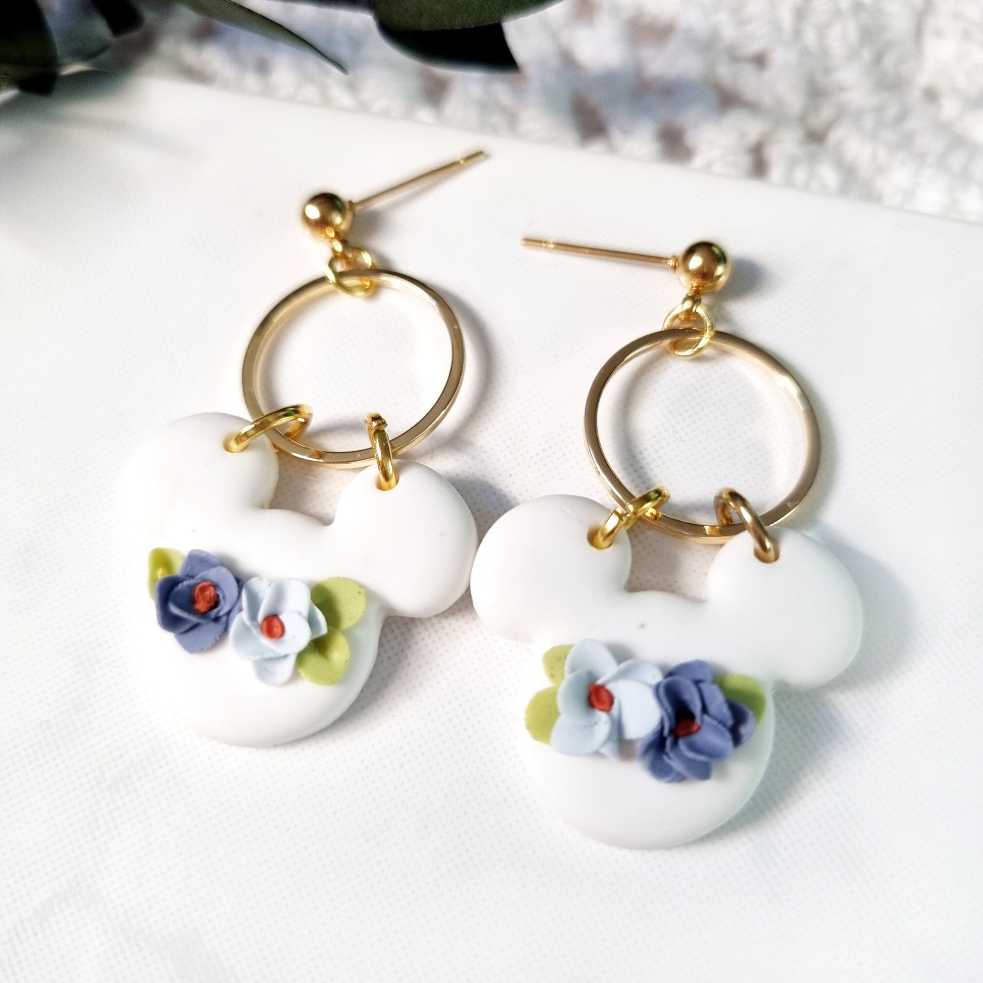 Darf ich euch unsere kleinen blumigen Mäuschen vorstellen? Zauberhaften Polymer Clay Ohrringe mit kleinen Blüten.