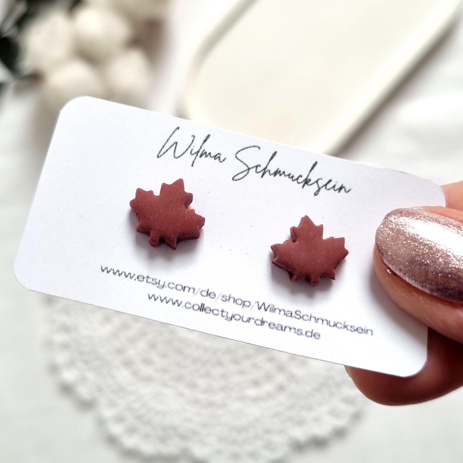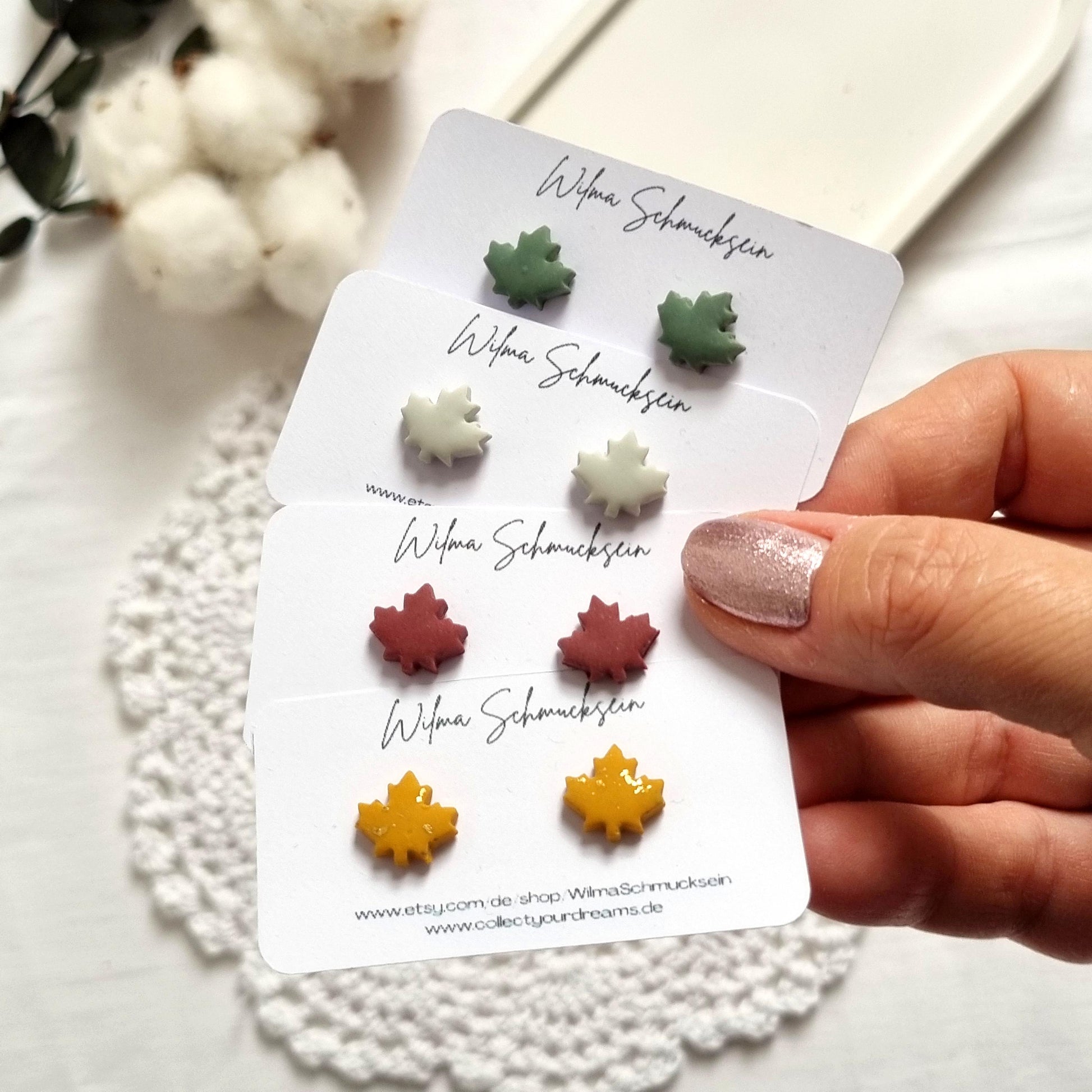 Darf ich euch unsere kleinen neckigen Polymer Clay Ohrstecker als Ahornbltter vorstellen? Zauberhaften Polymer Clay Ohrstecker in verschiedenen Farben.