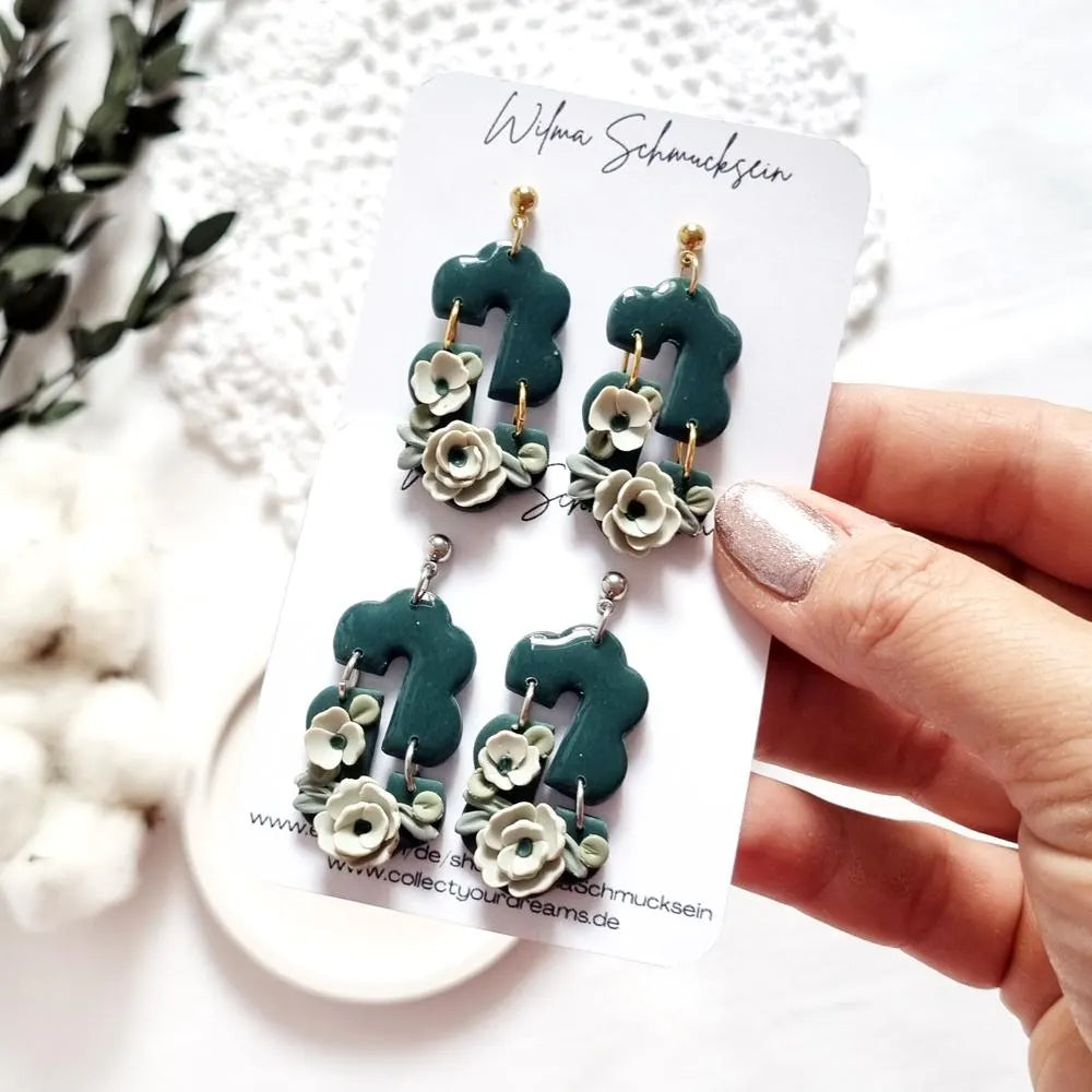 Darf ich diese zauberhaften Polymer Clay Ohrringe mit Blüten vorstellen? Wunderschöne Polymer Clay Ohrringe in gold oder silber.