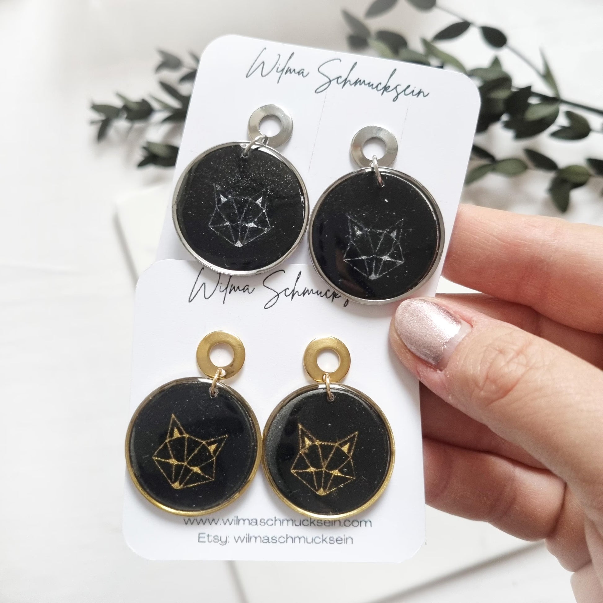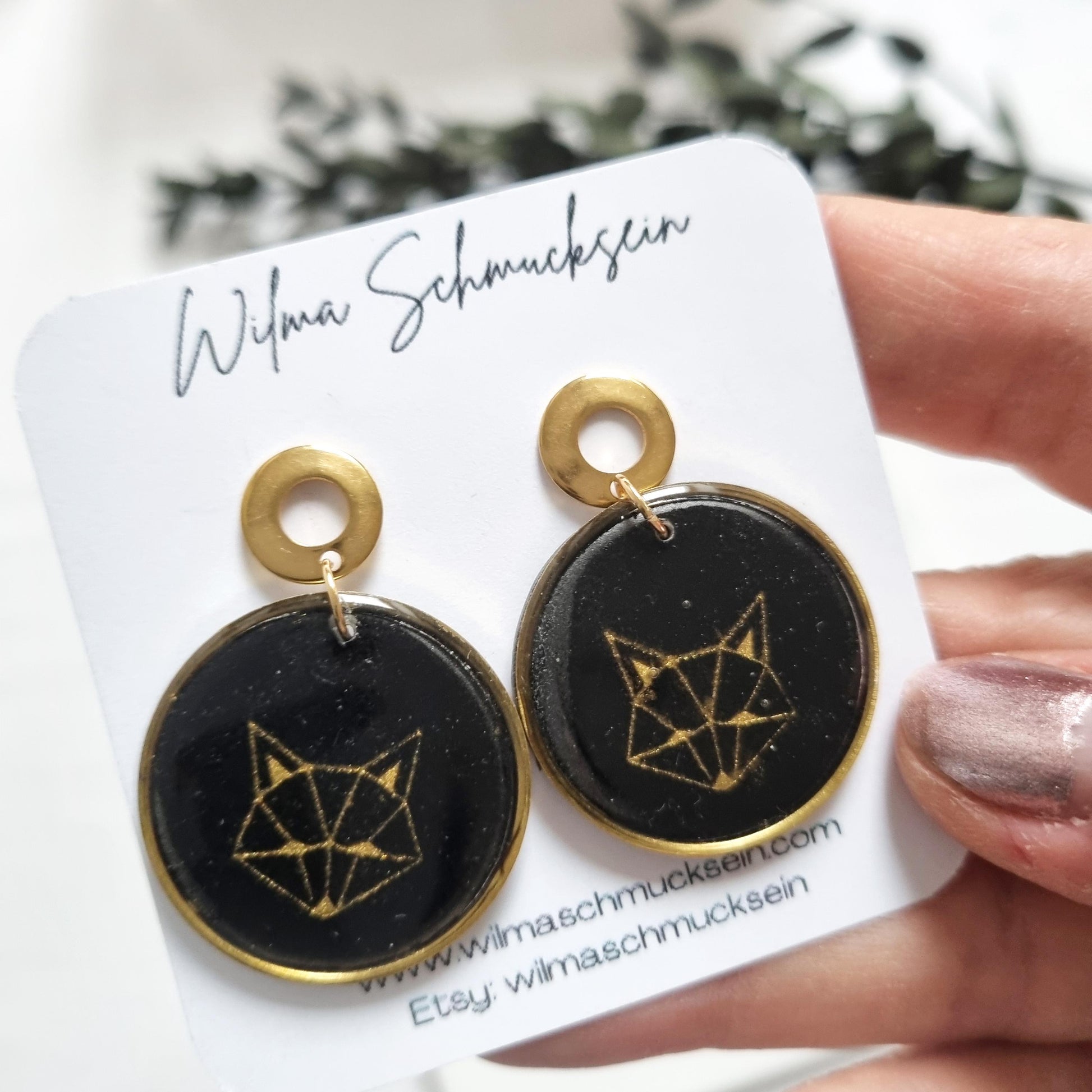 Zauberhafte Fuchskopf Polymer Clay Ohrringe in Gold oder Silber. Wunderschöne Polymer Clay Ohrringe an einem runden Edelstahl Stecker.