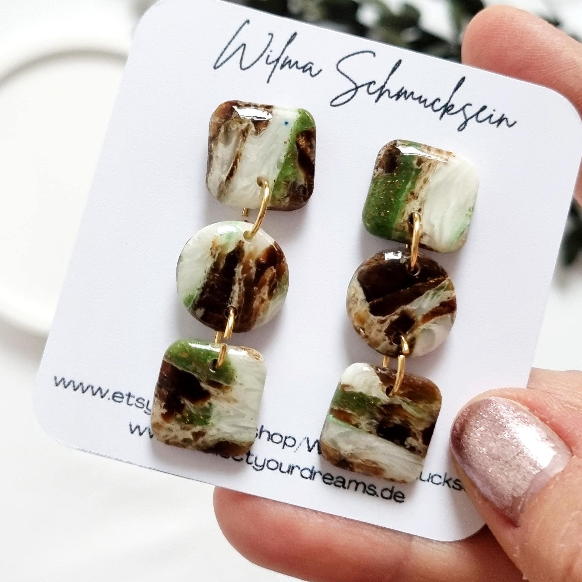 Zauberhafte grün braune gemusterte Polymer Clay Ohrringe. Wunderschöne Polymer Clay Ohrringe an einem Edelstahl Stecker.