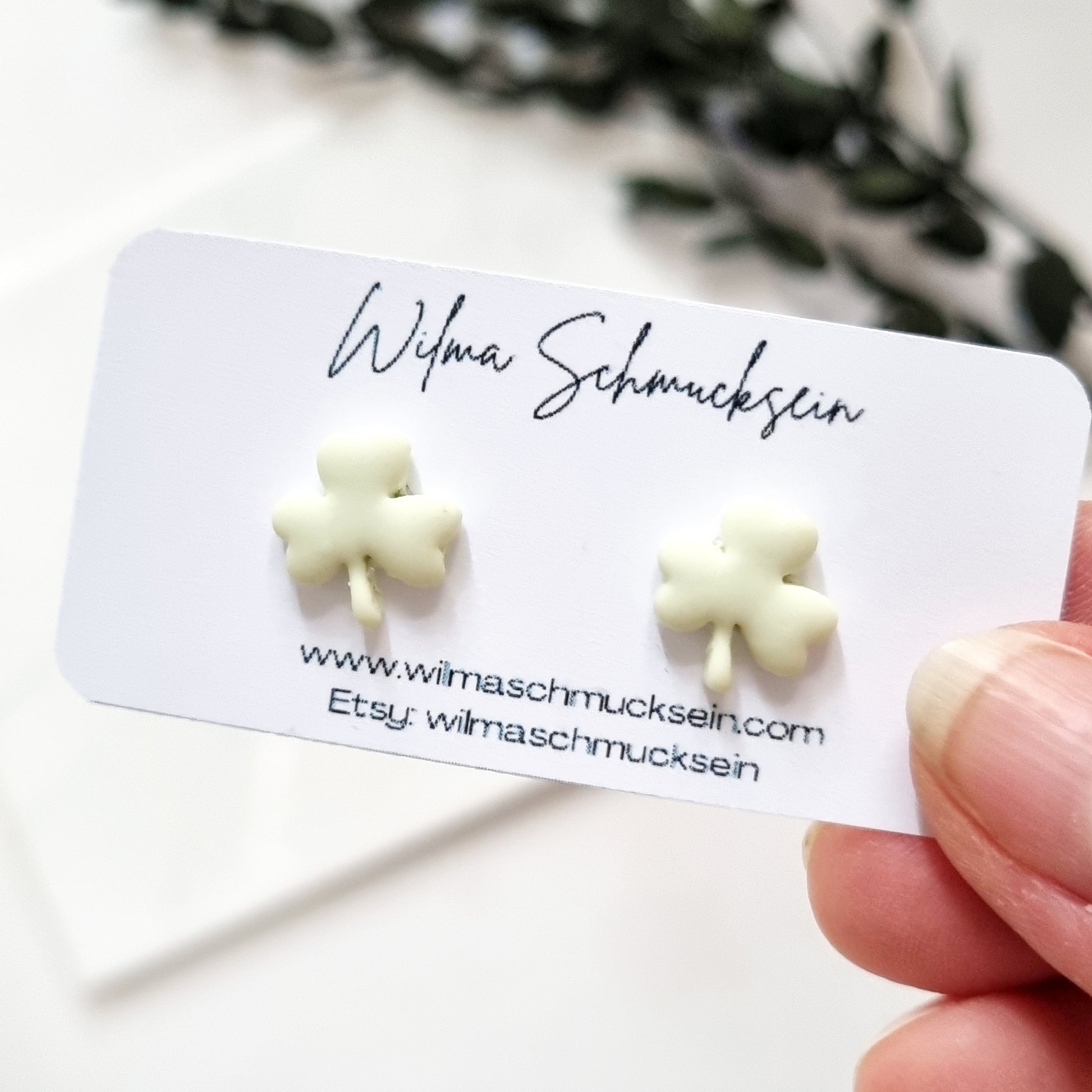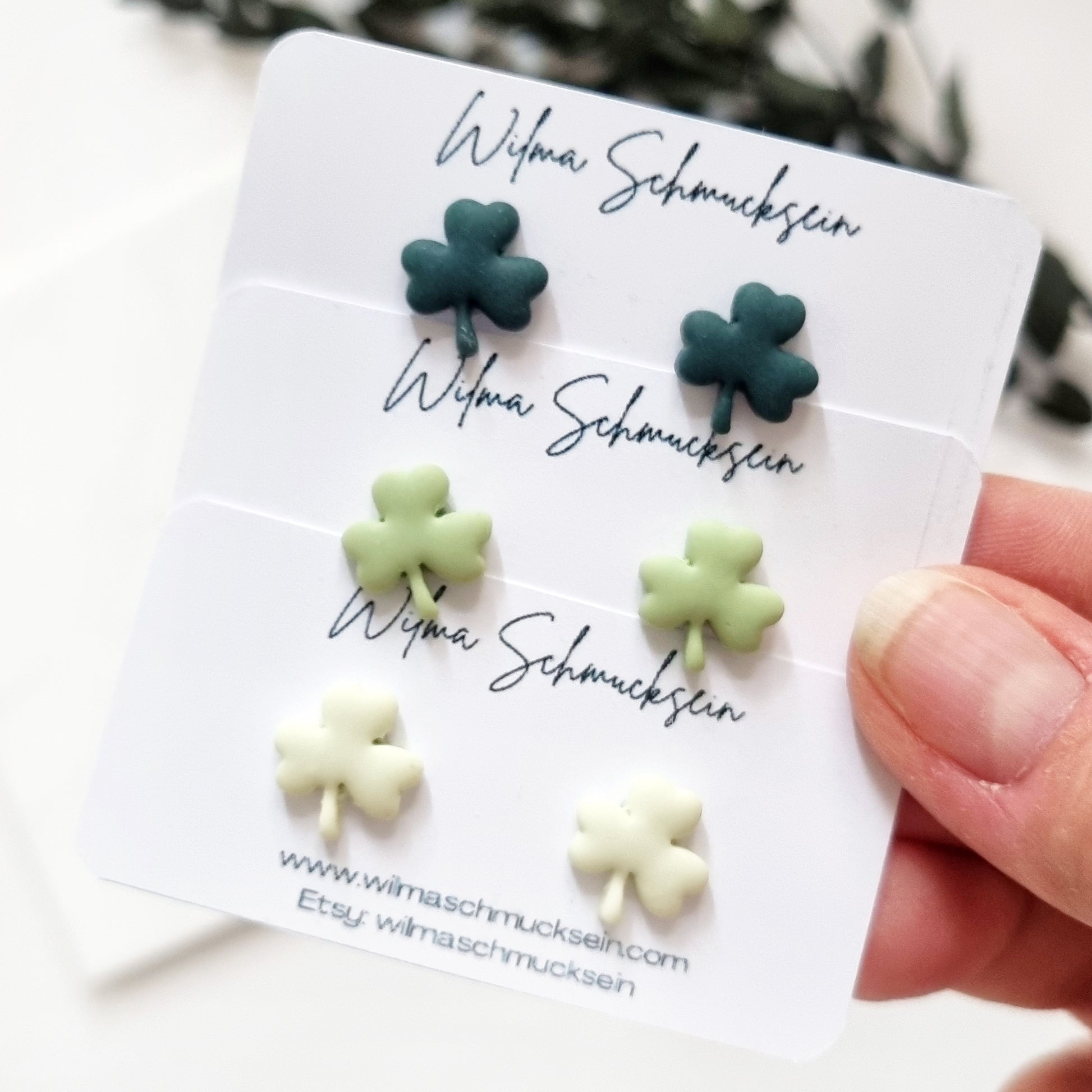 Darf ich euch unsere kleinen Kleeblatt Polymer Clay Ohrstecker vorstellen? Zauberhaften Polymer Clay Ohrstecker in verschiedenen Farben.