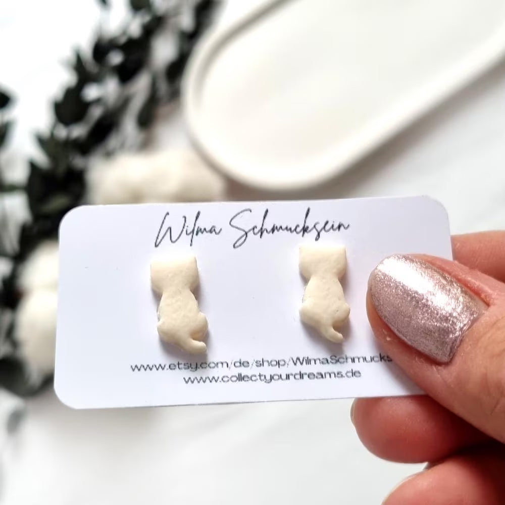Polymer Clay Ohrstecker kleine Katzen mit Leder Effekt