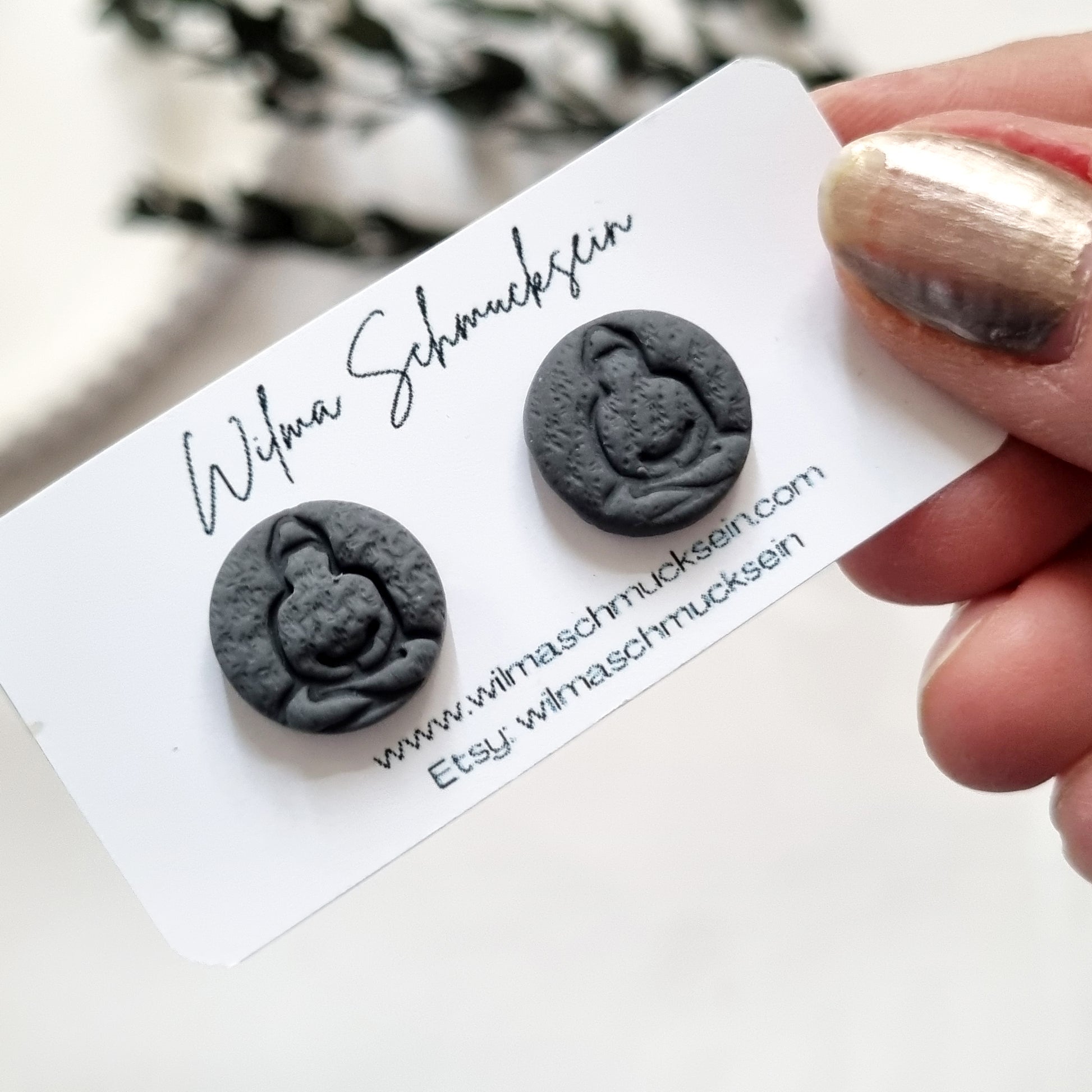 Für jeden unserer Ohrringe benutzen wir ausgewählte Materialen. Deine gewünschte Form wird ausgestanzt, bearbeiten und im Ofen gebrannt. Danach wird geschliffen und poliert und die fertigen Teile werden zusammengesetzt. Wir fertigen jedes Produkt mit viel Liebe zum Detail in Handarbeit.
