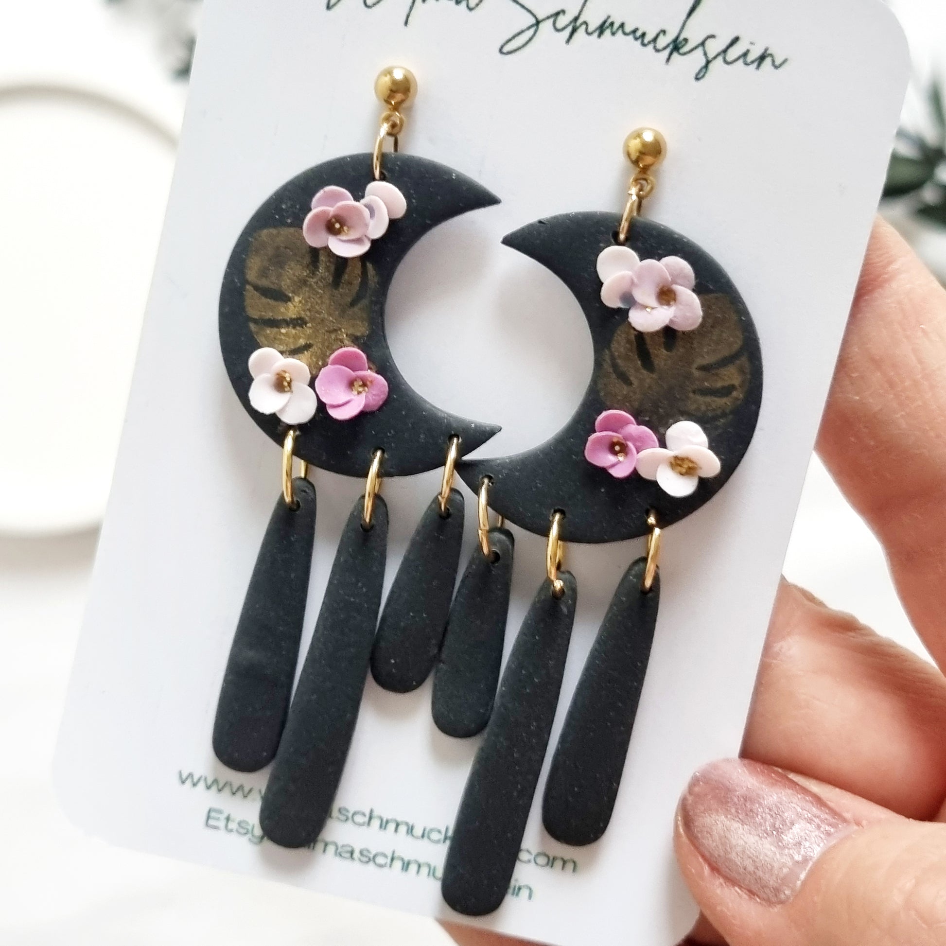 Wunderschöne sommerliche Ohrringe Mond mit kleinen Blumen. Auch zauberhaft zum verschenken an einen lieben Menschen.