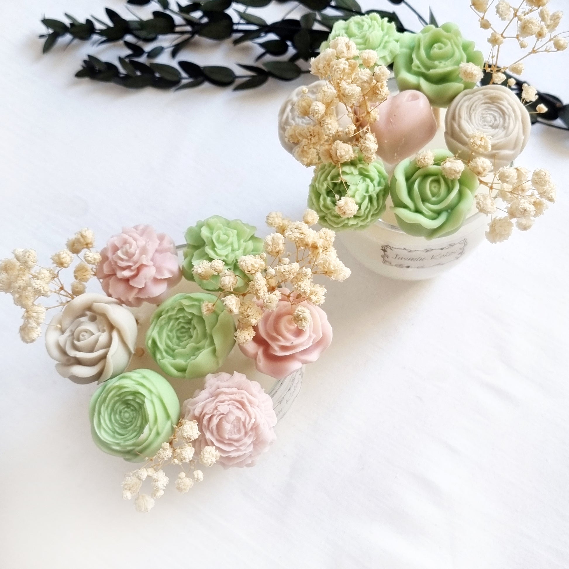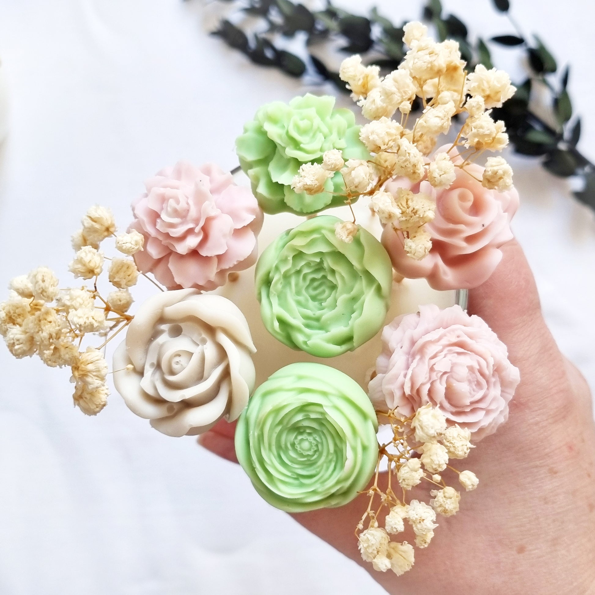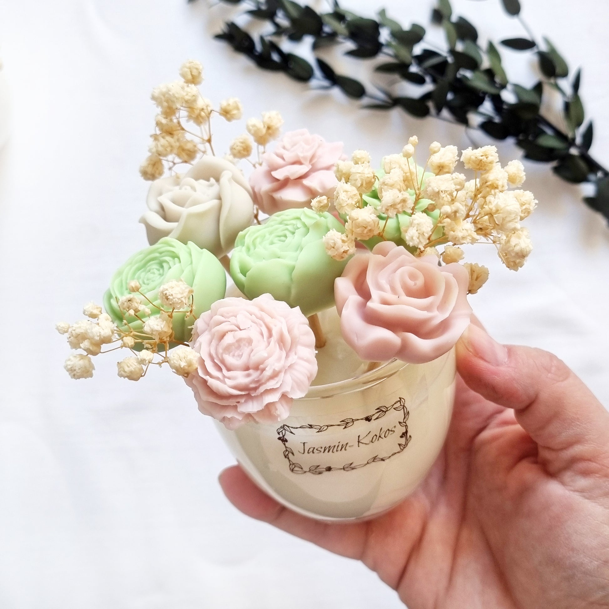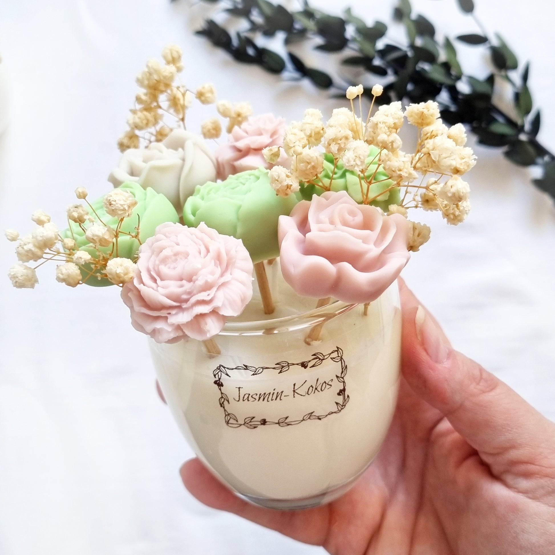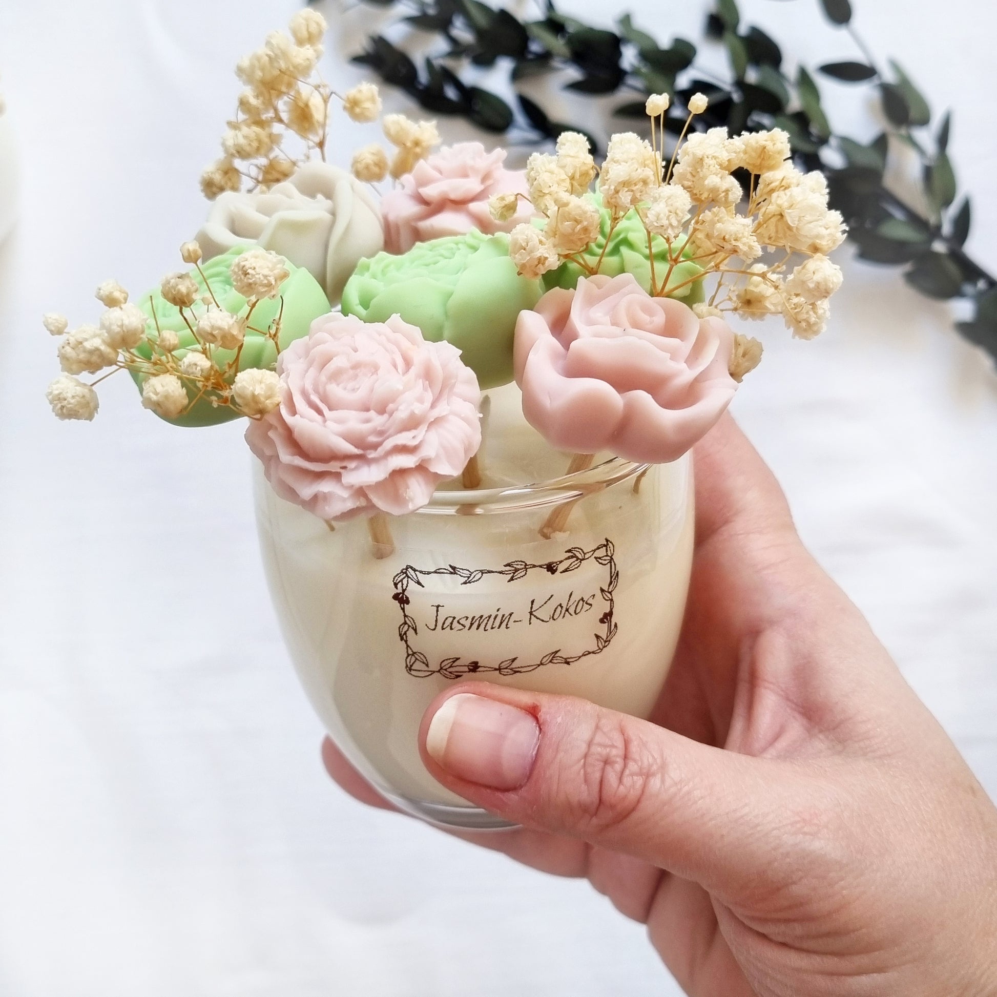 Unsere, mit Liebe handgegossenen, Sojawachskerzen werden mit Duftblumen aus Wachs verziert und sind die perfekte Ergänzung zu eurer Home Deko oder eine schönes Geschenk für einen lieben Menschen. Sie passen auch perfekt als Gastgeschenk für deine Hochzeit.