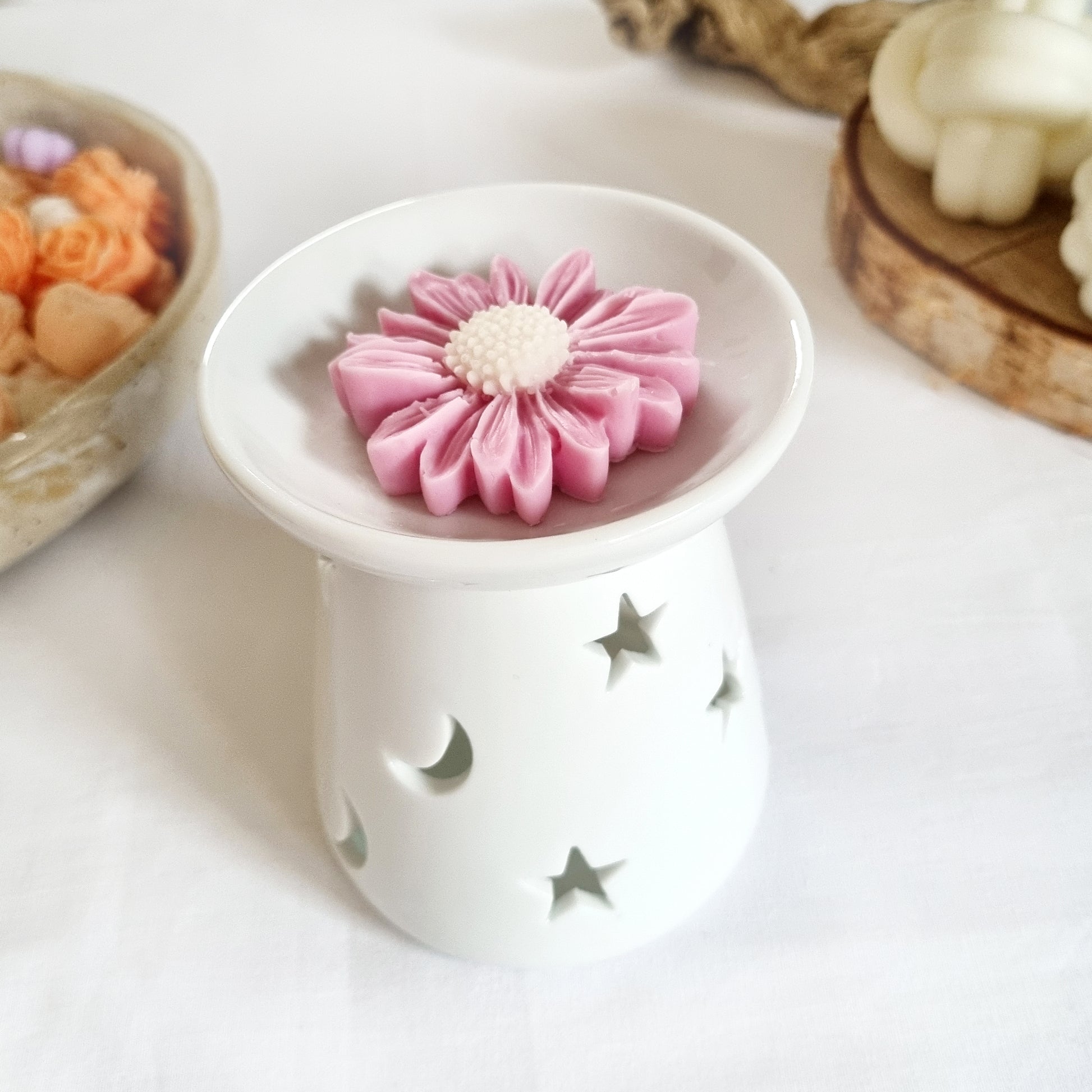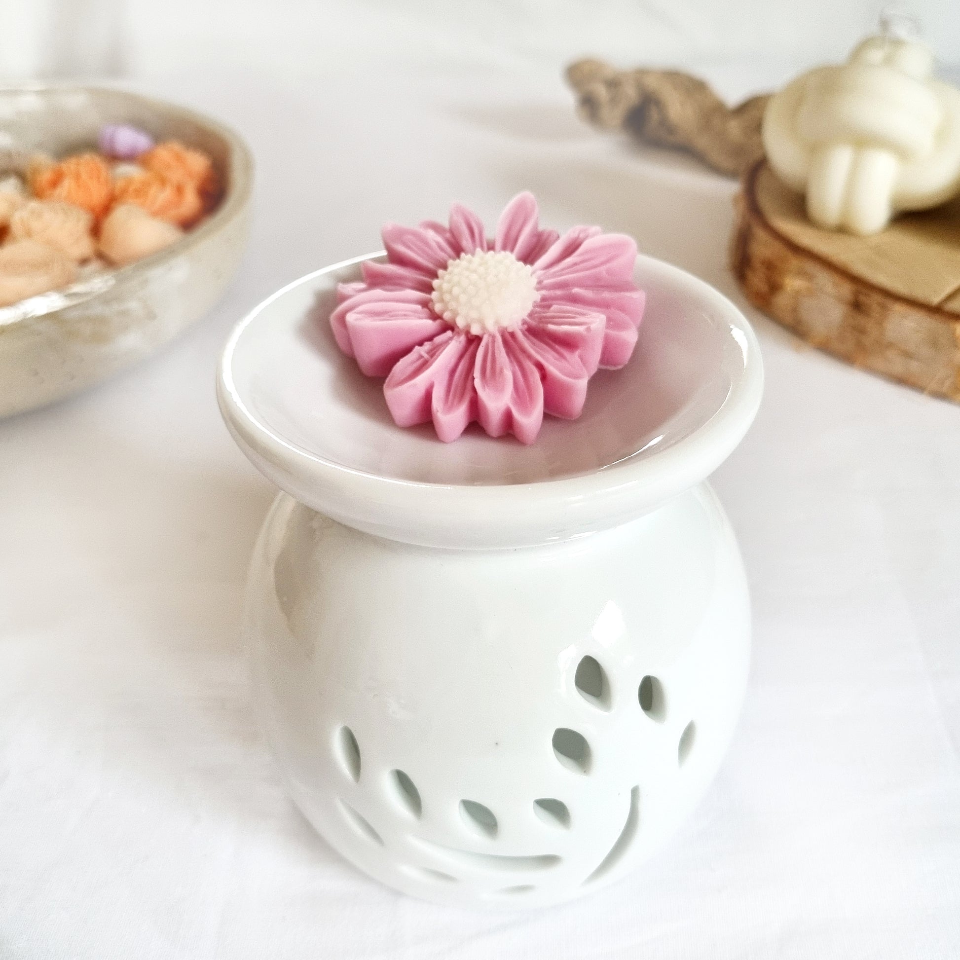 Die Duftmelts sind aus Sojawachs mit eine Duftanteil von 10%. Natürlich können wir dir die Duftblume auch in jeder anderen Farbe anbieten. Habt ihr besondere Farbwünsche oder möchtet ihr eine größere Stückzahl, so gebt uns gern Bescheid.