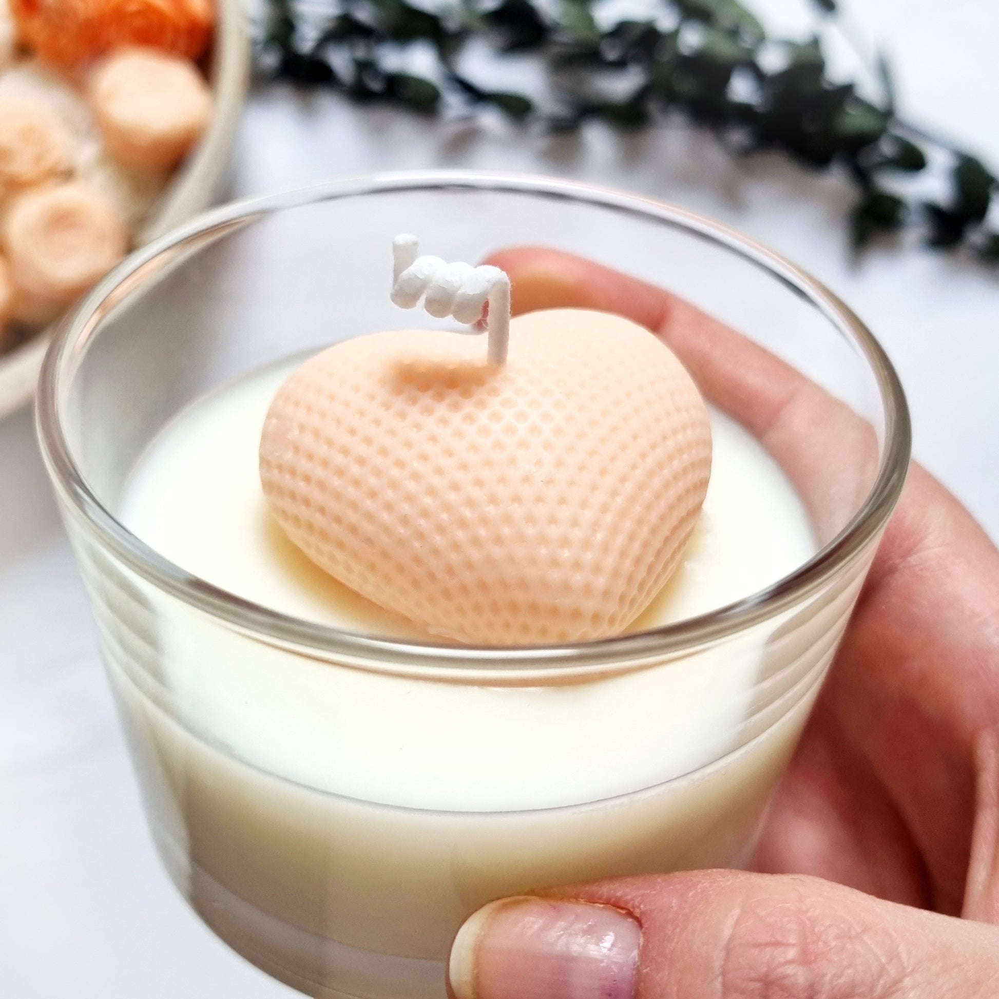vegane Sojakerze Duftkerze im Glas mit Herz Dekoration