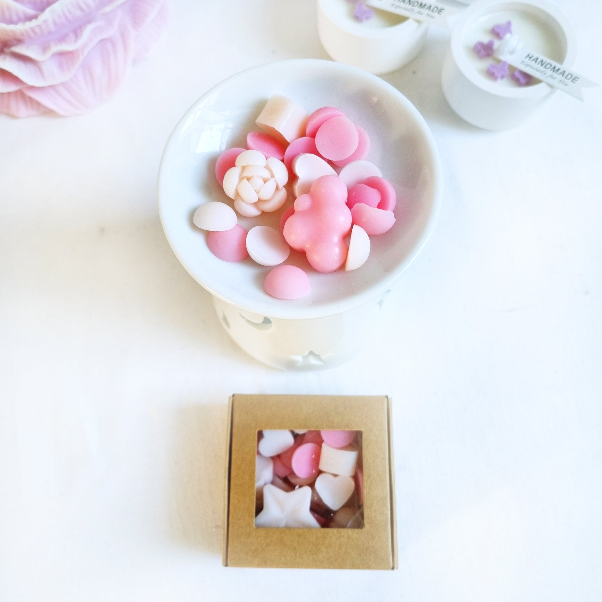 Liebevoll von Hand gegossene Sojawachs Duftmelts in der Duftrichtung "Romantische Rose". Gern kannst du zu den Wachsmelts die Duftlampe gleich mit bestellen, so kannst du deine eigene Aromatherapie gleich starten.